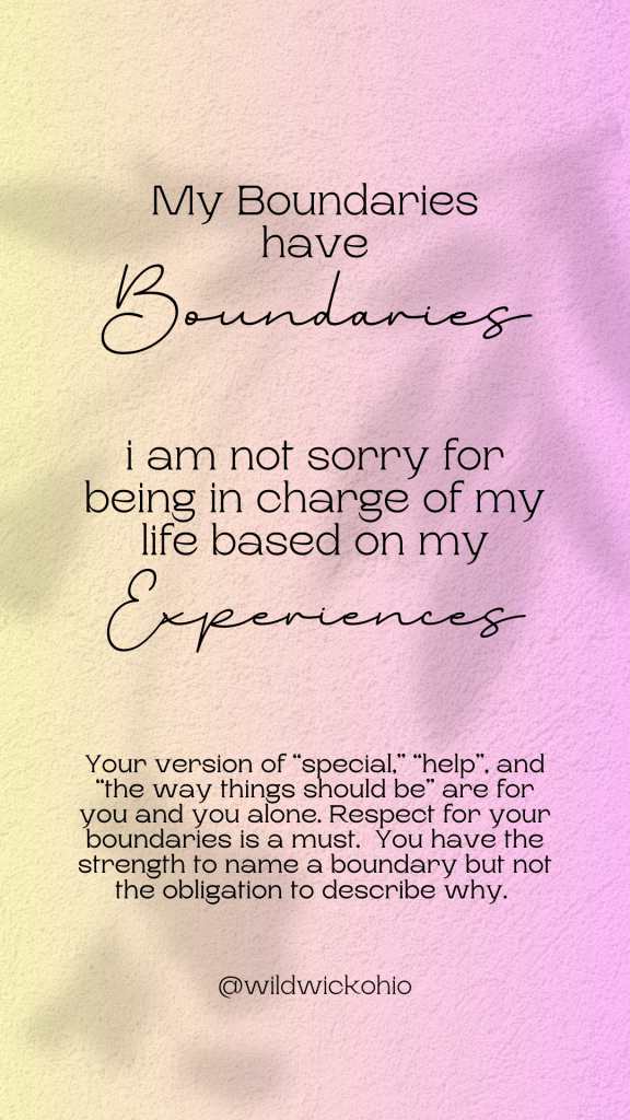 That’s why I, and in a sassy fashion, I’m here to remind you that your boundaries have boundaries. What this means is the very popular concept of boundaries do not require explanations. You can simply tell somebody it is a boundary. You do not have to explain your story, or your past experiences. Especially as an adult we want to justify things in our lives, we want to make our experiences make sense to others. It does not matter if it makes sense to others. It is your boundary. No explanations.